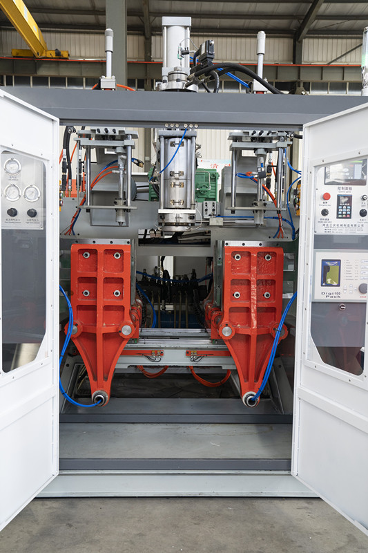此機為2.5L-12L液壓吹塑機帶包層、液位線(xiàn),可吹制機油壺、酒壺、醬油壺、尿壺等中空產(chǎn)品。擠出系統可選擇單層、雙層、三層、四層,可搭配各種擠出量要求。