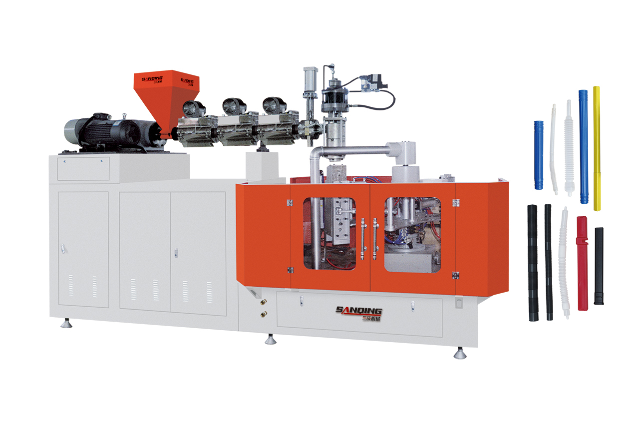 此機型專(zhuān)業(yè)吹制以PE/PP為原料的下水道管、洗衣機管、警示架包裝盒、吸塵器管、播種機管等。具備自動(dòng)上料、自動(dòng)吹制、自動(dòng)脫模,吹制長(cháng)度可達1M米。本機質(zhì)量穩定,日產(chǎn)達10000-20000支。